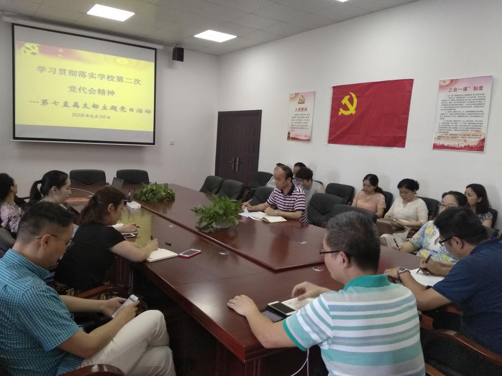 6月20日,第七直属党支部召开全体党员会议,组织开展学习贯彻落实学习校第二次党代会精神主题党日活动。会议由党支部书记李故新主持。