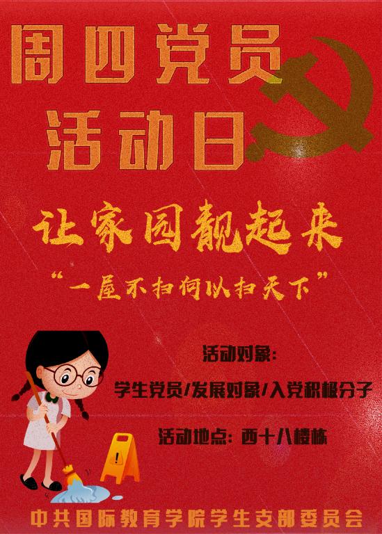 国际教育学院学生支部委员会策划发起的周四党员活动日,全体学生党员、预备党员、发展对象以及优秀的入党积极分子参与。