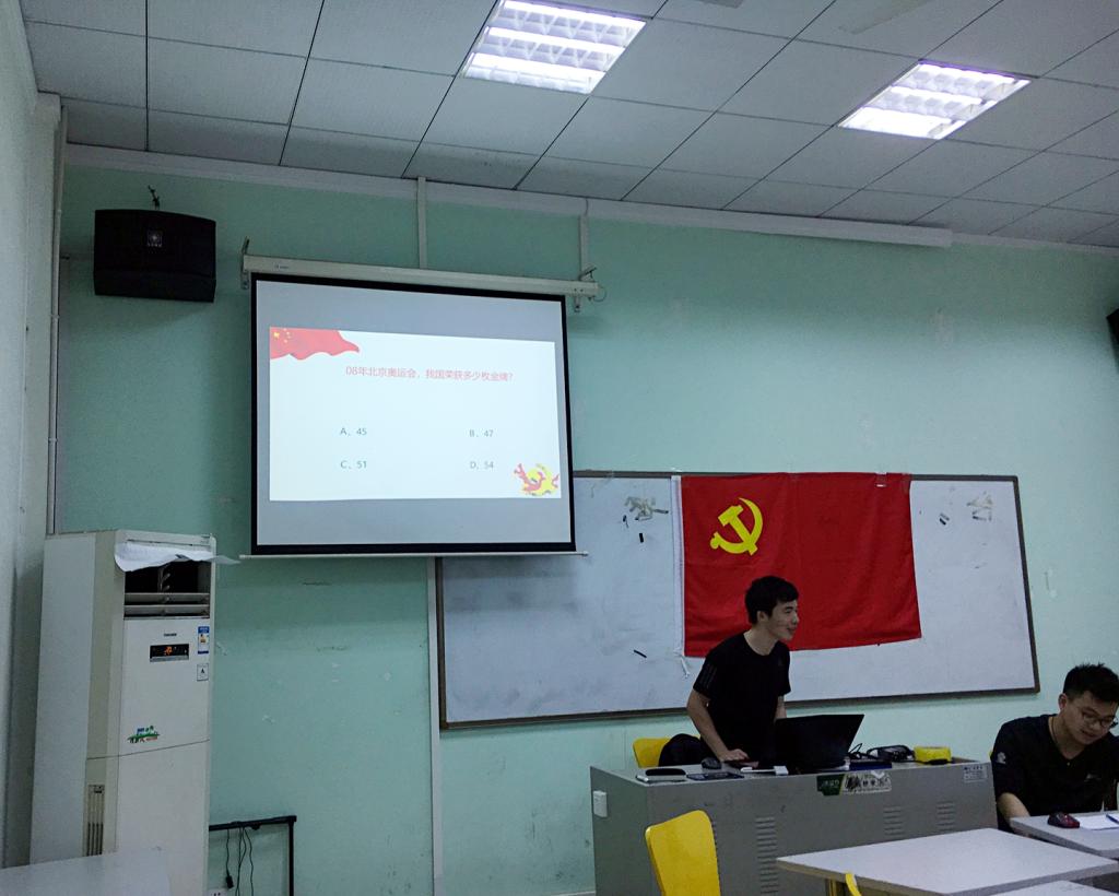 此次竞赛由支部工作小组胡逸轩同学主持,共分为三大部分:必答题、抢答题、风险题,采用累计记分的方式进行评判,题目涉及中国的抗日战争、改革开放、社会现状与发展矛盾、十九大时政等多方面的内容。