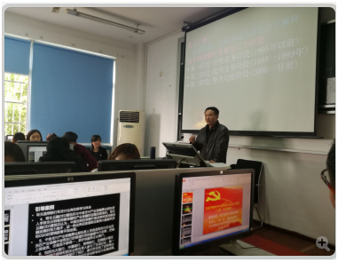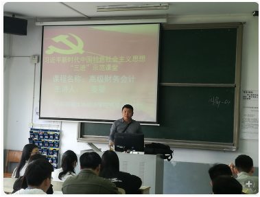 为全面贯彻落实《关于建设学习贯彻党的十九大精神“示范课堂”的通知》,深入推动习近平新时代中国特色社会主义思想进教材、进课堂、进师生头脑的“三进”工作,在3月份的主题党日活动中,商学院党总支书记唐志文做出了3月下旬每系向党总支至少推出两堂示范课,党总支4月组织专人听课,进行验收、决选的工作要求。