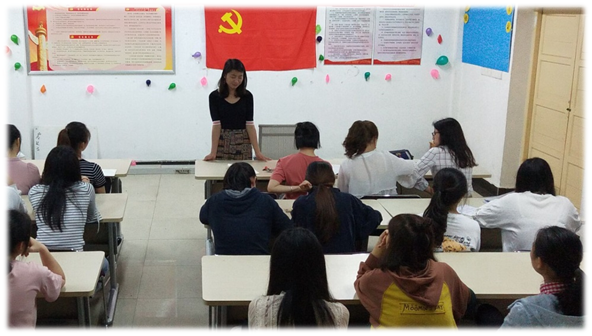 (图为东03-9栋活动支部书记付珊珊在学生寝室进行座谈)